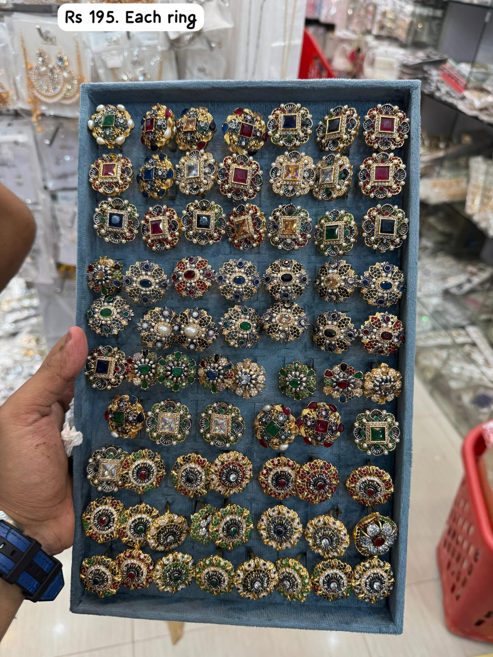 Elevate your style with these antique-inspired statement rings, featuring intricate floral designs and vibrant multi-stone detailing. Perfect for weddings, festive wear, and traditional outfits — limited stock available!